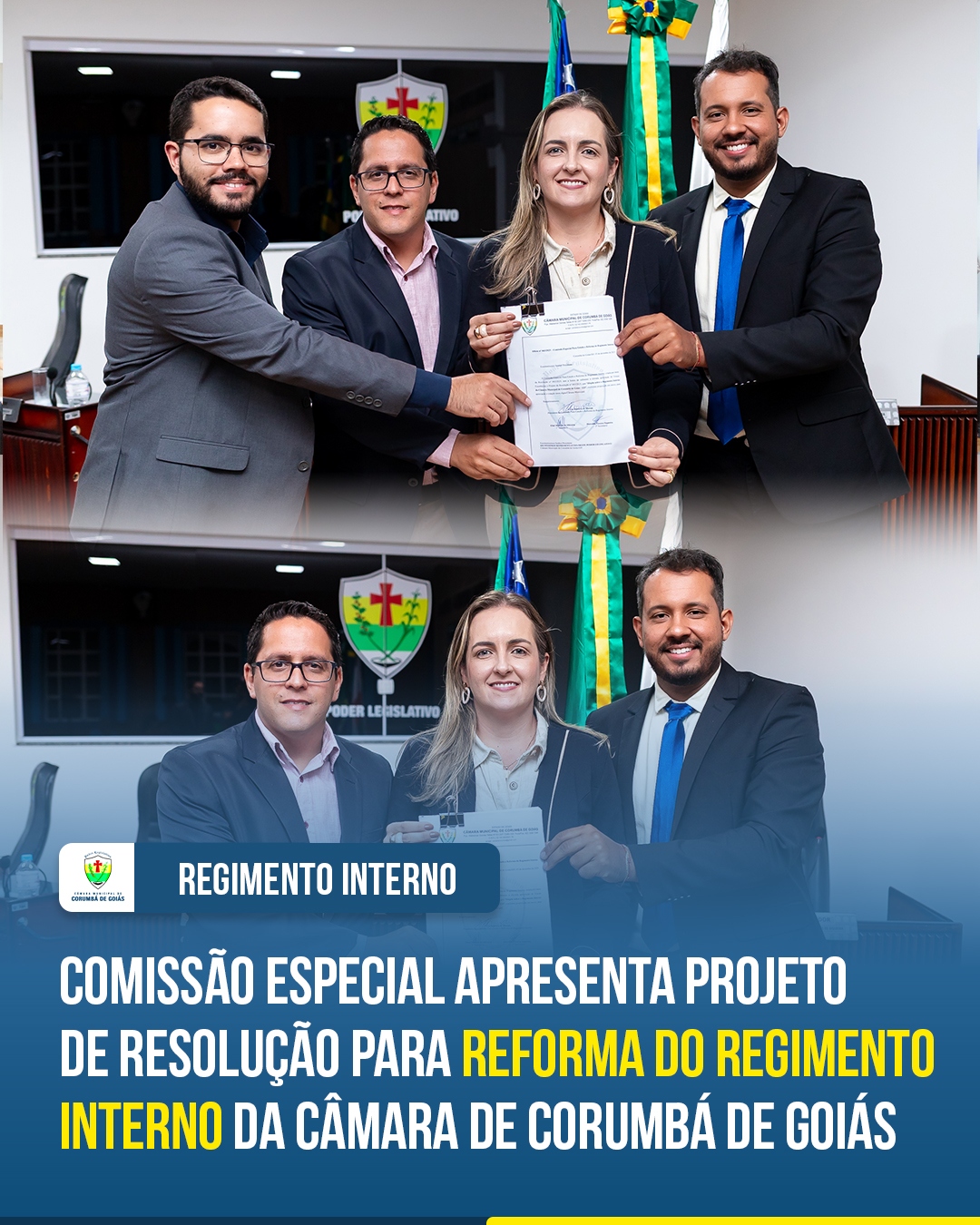 A Câmara Municipal de Corumbá de Goiás deu um passo importante para a modernização de seus trabalhos legislativos. Foi apresentado em plenário o Projeto de Resolução nº 003/2025, que dispõe sobre o novo Regimento Interno da Casa de Leis.