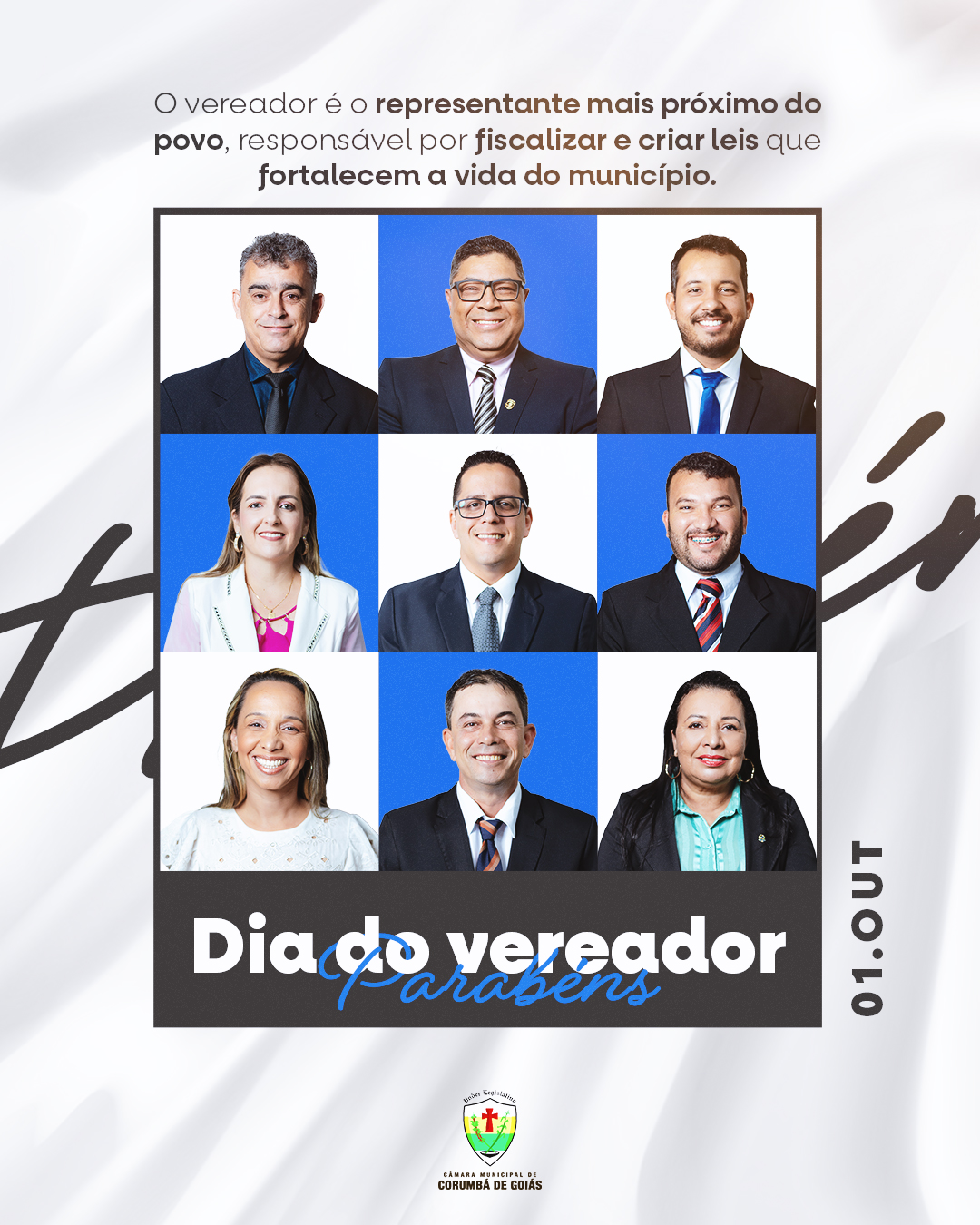 Neste 1º de Outubro, a Câmara Municipal de Corumbá de Goiás celebra o Dia do Vereador e lembra: nosso papel vai além de criar leis. É estar atento às necessidades da população e ser o porta-voz dos anseios da comunidade.