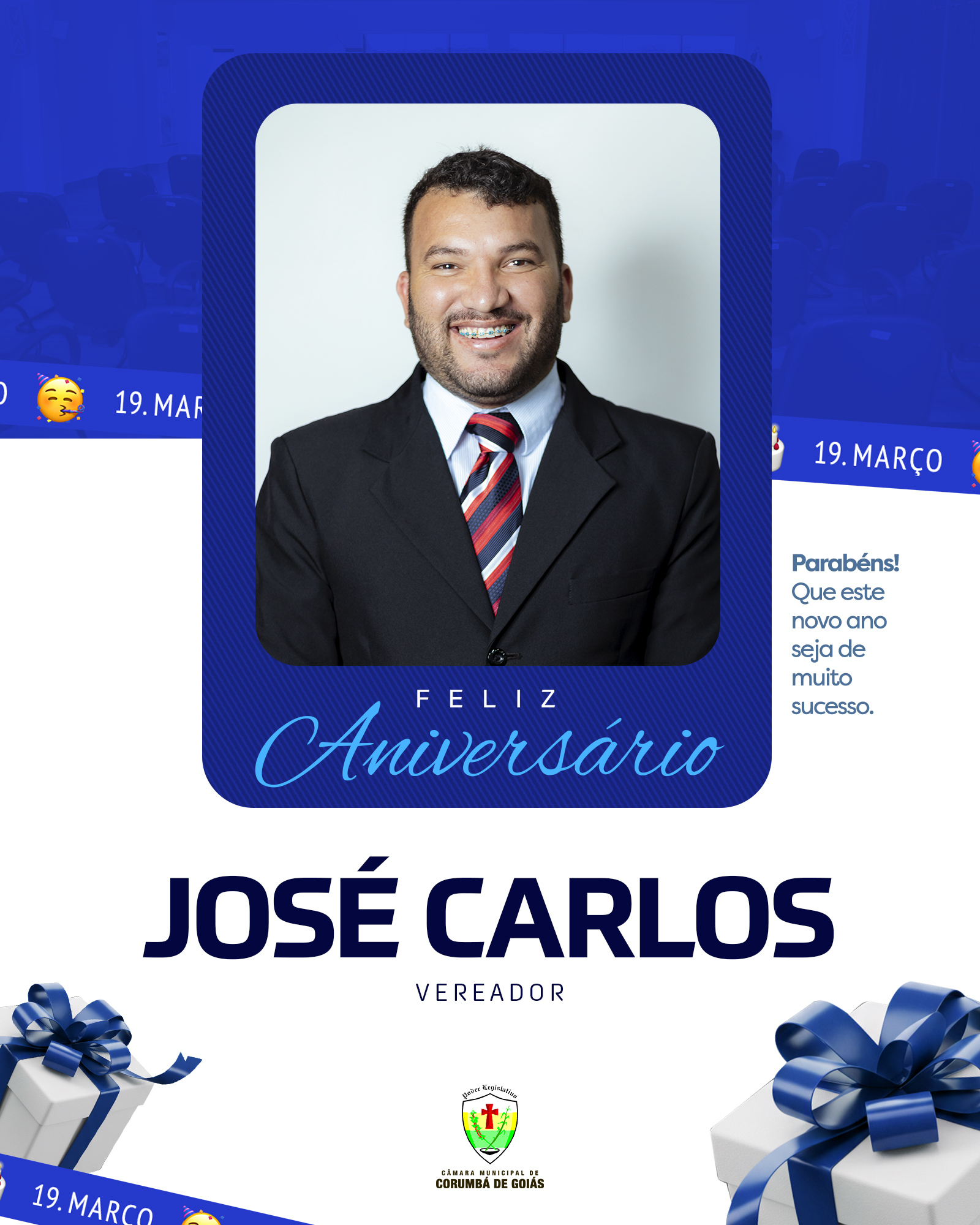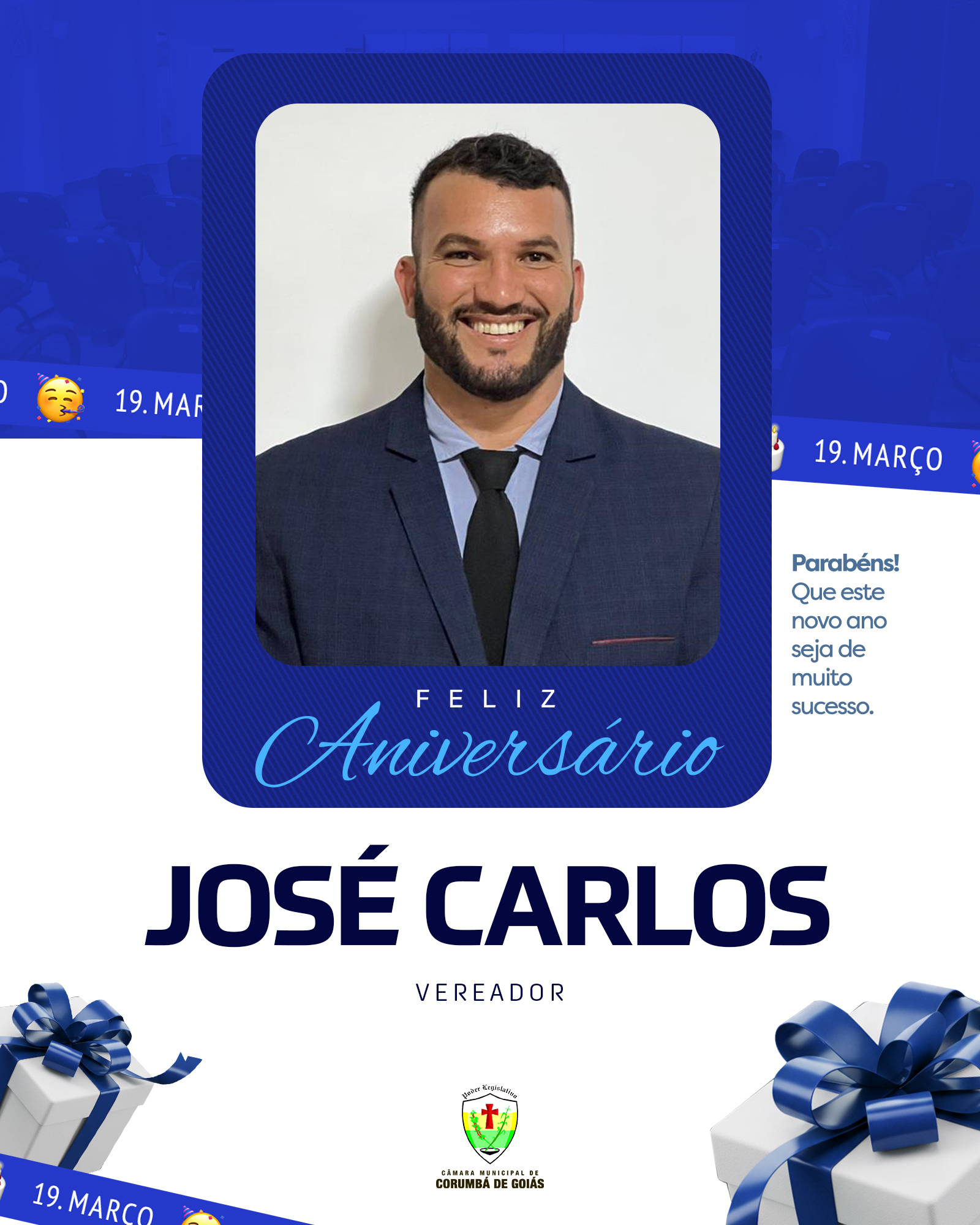 Hoje, 19 de março, a Câmara Municipal de Corumbá de Goiás celebra o aniversário do vereador José Carlos, mais conhecido como “Zé Piriguete”.